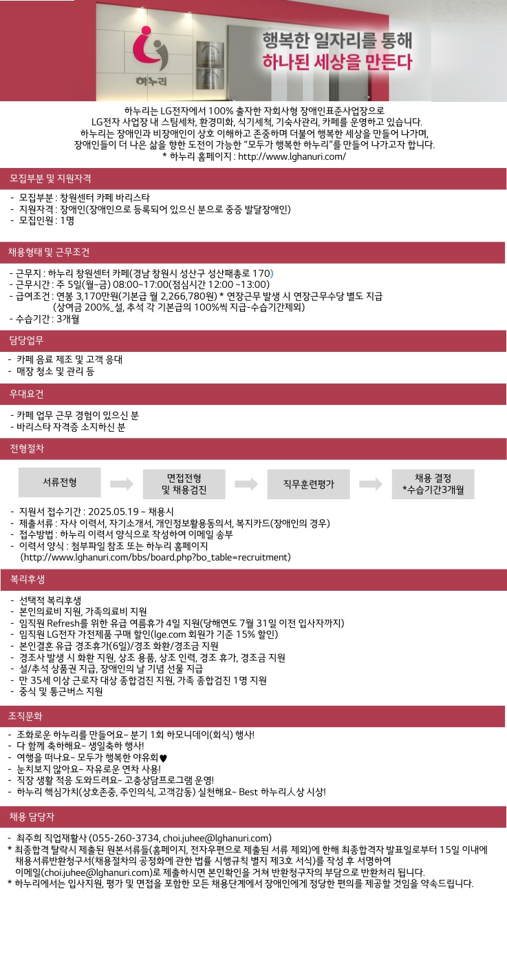 [마감]창원센터 카페 바리스타 채용(중증 발달장애인)