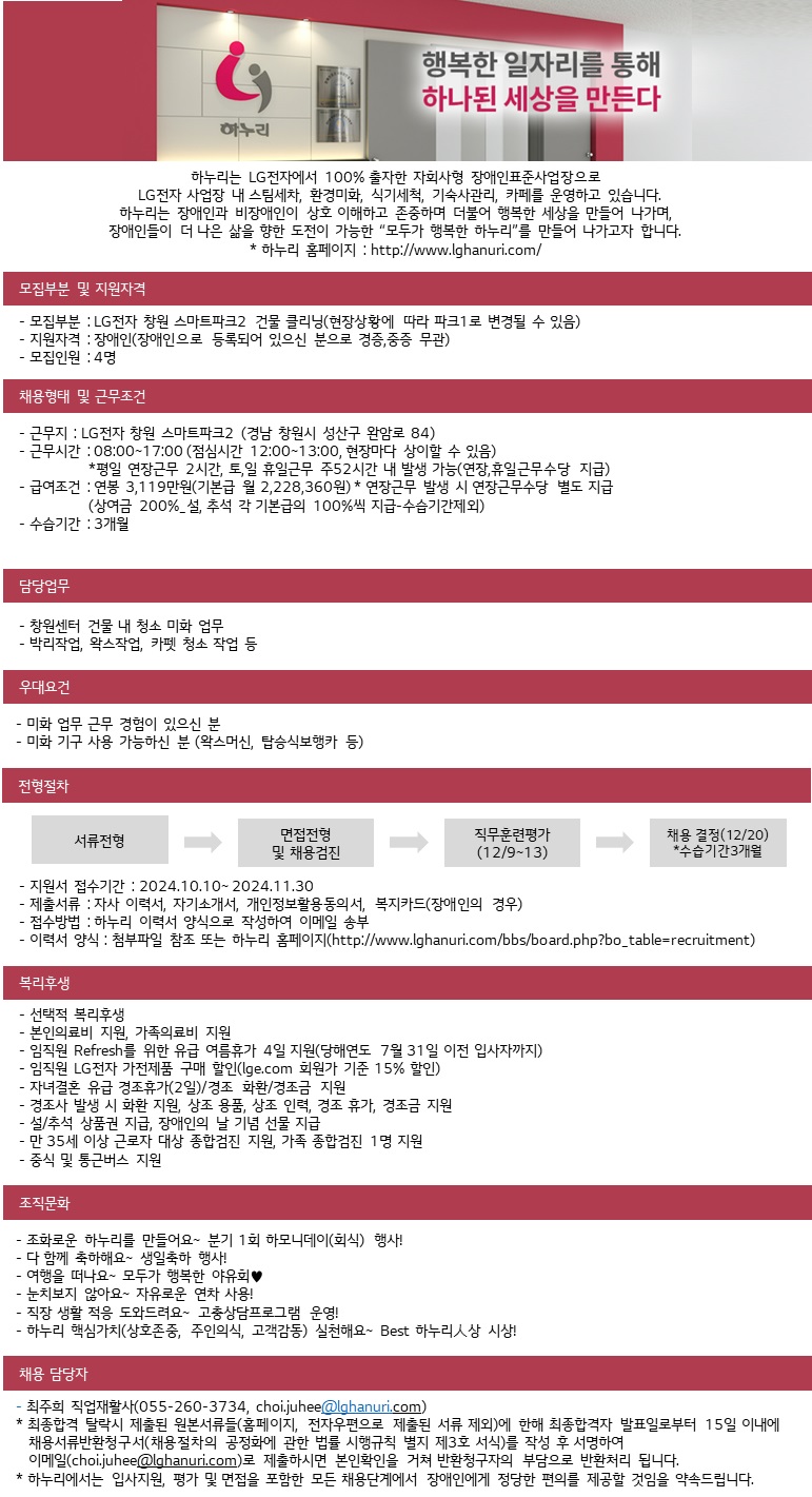 [마감]창원센터 클리닝 사원 채용(장애인만)