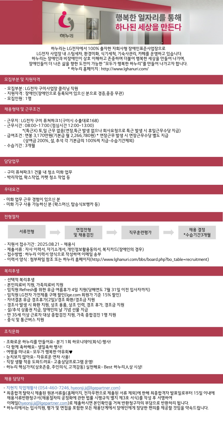 하누리는 장애인과 비장애인이 상호 이해하고 존중하며 더불어 행복한 세상을 만들어 나갑니다.