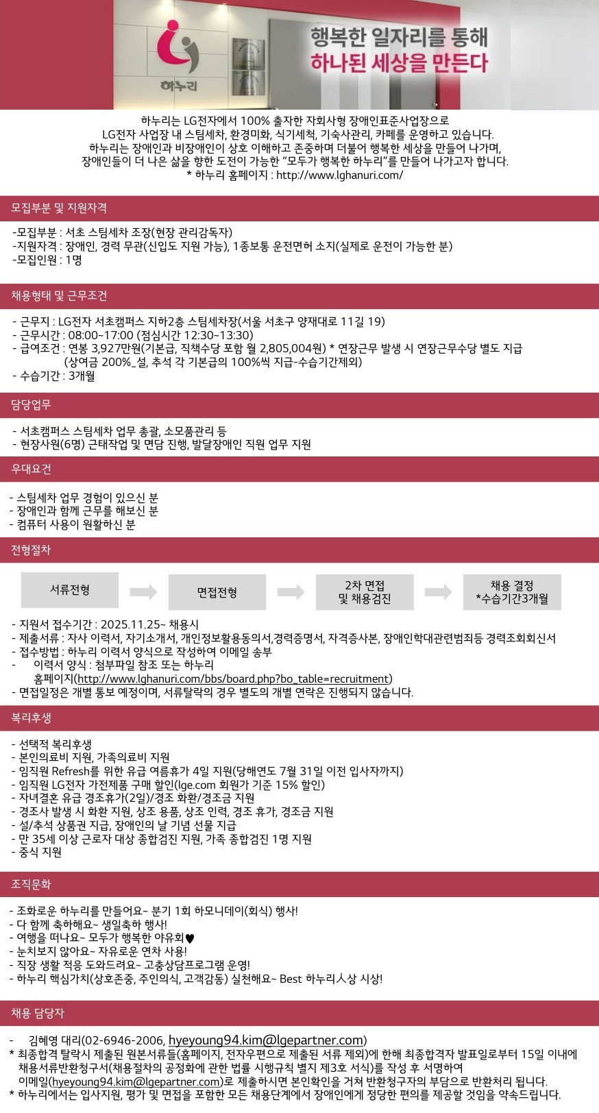 중부센터 서초 스팀세차 조장 채용(장애인)